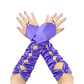 Gants en satin polyester pour femmes de Mardi Gras en plusieurs couleurs design élégant avec des détails perlés parfaits pour le carnaval et les bals masqués