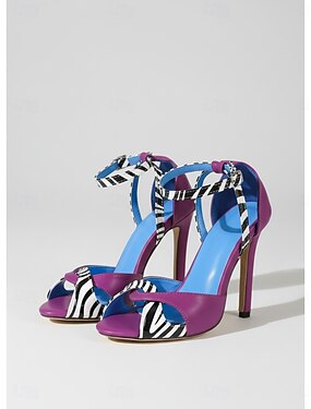Sandales à talons aiguilles violettes éclatantes pour femmes - élégantes sandales à talons hauts à rayures zébrées avec bride à la cheville, parfaites pour les dîners de croisière de luxe, les galas et les soirées d'été.