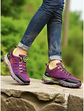 Chaussures de randonnée imperméables pour femmes – Chaussures de trail montantes violettes avec support de cheville pour le trekking, le camping et les aventures en montagne