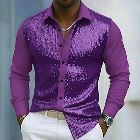 Mardi Gras Homme Paillettes scintillantes Carnaval Conception de faux col et de costume Chemise Chemise Boutonnée manche longue Mode Décontractée Soirée Fête Printemps Automne Col Rabattu Impression