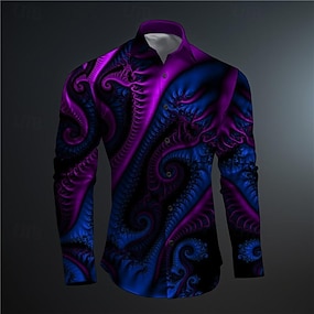 Homme 3D Print Formes Géométriques Chemise boutonnée Chemises imprimées manche longue Sous-culturel Vacances Soirée Plein Air Printemps été Col rabattu Imprimer Bouton bas Rouge Bleu Violet Vert Gris