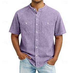 Homme Chemise Chemise Décontractée Chemise Boutonnée Chemise 100% coton délavée à l'acide Noir Vert Claire Rose Claire Violet Kaki Manche Courte Uni Col grand-père Occasionnel Quotidien Poche Avant