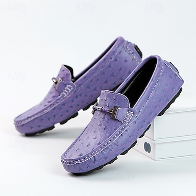Mocassins pour homme en cuir verni violet au design élégant – chaussures chics pour les fêtes, les mariages et les événements branchés