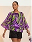 Femmes Hauts Élégants Fleuri Élégant Dames Manche 3/4 Col de chemise Hauts Réguliers Travail Soirée robe demoiselle d honneur Violet Printemps Automne Hiver