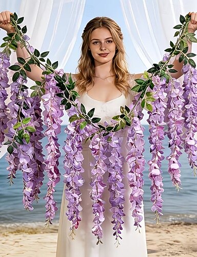 Couronne de 3 fleurs artificielles de glycine, idéale pour le printemps, la Saint-Valentin, la décoration murale (arche) et les fêtes (chambre, mariage, anniversaire, Nouvel An).
