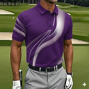 Homme Géométrique Golf Polos de Sport Manche Courte Polos Chemises à Col Occasionnel Athleisure Boutons Printemps & Été Bleu Noir Violet