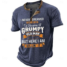 Chemise Henley graphique amusante pour homme 'Vieux grincheux' - T-shirt de style de vie à manches courtes