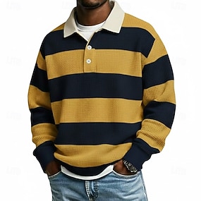 Homme Rayures horizontales Chemises Polo Gaufre Polo de rugby Texturé manche longue Polos Revers Vêtements de sport Occasionnel École Athleisure Tenue quotidienne Impression 3D Printemps Automne Hiver