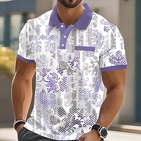 Homme Formes Géométriques Polo Manche Courte Polos Chemises à Col Vêtement décontracté de travaile Extérieur Athleisure Tenue quotidienne Boutons Avec Poches Été Blanche Bleu Violet