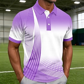 Homme Géométrique Golf Polos de Sport Manche Courte Polos Chemises à Col Occasionnel Athleisure Boutons Printemps & Été Bleu Violet Vert