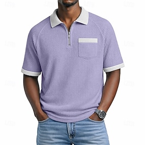 Homme Chemises Polo Gaufre Polo à fermeture éclair Occasionnel Quotidien Revers Zip quart Manche Courte Mode Basique Uni Bloc de Couleur Quart de zip Printemps & Été Été Printemps Coupe régulière