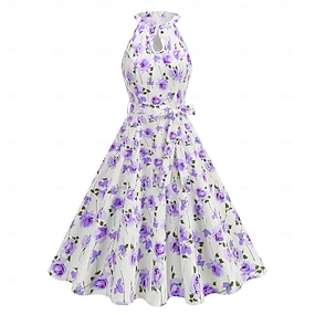 Élégant Classique Années 1950 Midi Robe Trapèze Robe trapèze Robe Évasée Sans manches Fleuri Ligne A Déguisement Femmes Carnaval Saint-Valentin Mascarade Vacances Tenue Quotidienne Enterrement de Vie