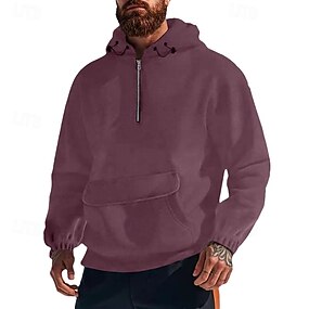 Homme Sweat à capuche Sweat à capuche quart zippé Sweat à capuche en polaire Bleu Noir Violet Gris Clair Gris foncé À capuche Uni Fermeture éclair Avec Poches Sport & Loisir Quotidien Fête Polyester