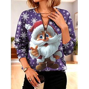 Femmes Sweatshirt Pull Graphique Père Noël Occasionnel manche longue Col ras du cou Hauts Réguliers Rue Occasionnel Fête Imprimé Rouge Bleu Violet Vert Printemps Automne Hiver