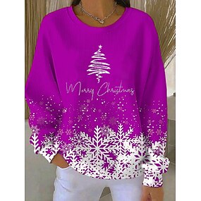 Sweatshirt Femme Noël Pull Graphique Décontracté Manches Longues Col Ronde Hauts Réguliers Rue Quotidien Décontracté Noir Rouge Bleu Violet Vert Automne Hiver