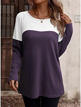 Femmes T-shirt Bloc de Couleur Uni Mode Élégant Classique manche longue Col ras du cou Hauts Réguliers Quotidien Sortir Week-end Bleu Blanc / Noir Violet Vert Gris Été Printemps Automne