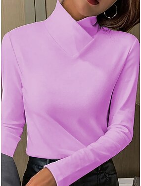 Femmes T-shirt Uni Élégant ancien Occasionnel manche longue Col haut Hauts Réguliers Quotidien Bleu Rose Claire Violet Orange Vert Printemps Automne Hiver