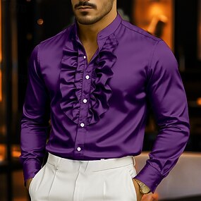 Homme Chemise Chemise habillée Chemise Décontractée Chemise Boutonnée Chemise de Bal Uni Carnaval Formel Blanche Rouge Violet Dorée manche longue Col montant Toutes saisons Vêtement Tenue Boutons