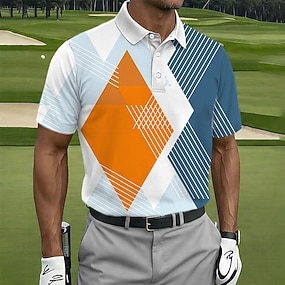 Homme Géométrique Golf Polos de Sport Manche Courte Polos Chemises à Col Occasionnel Athleisure Boutons Printemps & Été Bleu Bleu Clair Vert