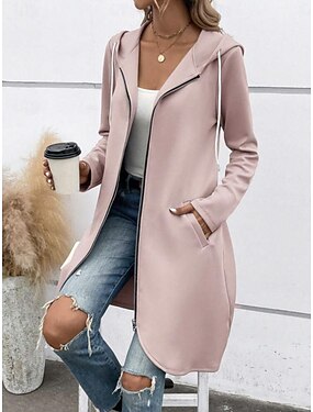 Femmes Veste Décontractée Veste à Capuche Confortable Respirant Fermeture éclair Avec Poches Occasionnel Uni Vacances Rue Occasionnel Tenue quotidienne Fermeture éclair Long À capuche Coupe régulière