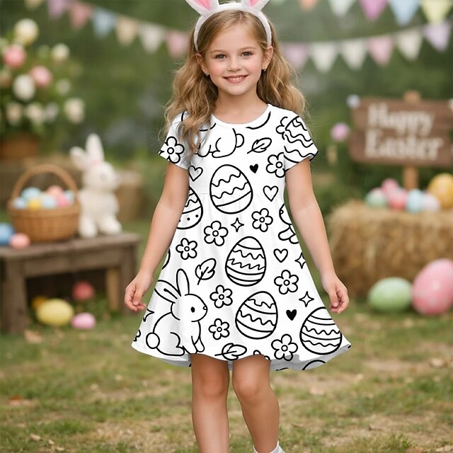 Pâques FILLE 3D Graphique Lapin Robe Manche Courte Impression 3D Été Printemps Quotidien Vacances Soirée Mignon Basique Occasionnel Enfants 4-12 ans Robe Décontractée Robe trapèze Mi-long Coupe #10078381