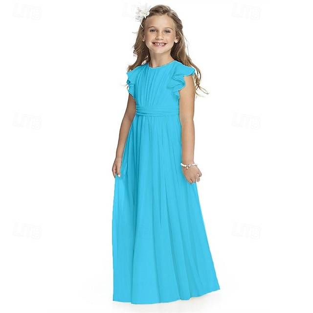 Robe de Demoiselle d'Honneur Fille enfants Fille Robe de soirée Robe de princesse Utilisation Mariage Soirée Elégant Magnifique Couleur unie Sans Manches Col Ras du Cou Rouge vin Noir 4 ans et + #10730218