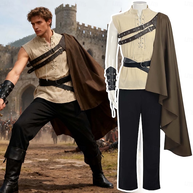 Pour:Homme,Types:Costume élégant,Personnages:Viking,Chevalier,Guerrier,Matériau:Polyester,Style:Renaissance,Médiéval,Sous-catégorie:Tenue,Délicat:Lavage à Sec et à l'Eau,Lavable,Vacances:Carnaval,Halloween,Occasion:Performance,LARP,Foire de la Renaissance,Groupe d'âge:Adulte,Thème:Viking,Fantaisie,Contenu:Bracelet,Cape,Ceinture,Pantalon,Chemise,