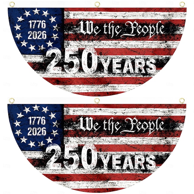 Lot de 2 drapeaux commémoratifs du 250e anniversaire des États-Unis, 45 x 90 cm (1776-2026), guirlande de fanions, décorations patriotiques à suspendre pour l'extérieur, porte d'entrée, porche, fond #13234241