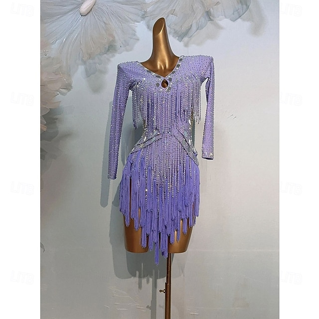 Pour:Femmes,Style:Élégant,Élégant,Occasion:Performance,Entraînement,Catégorie:Danse Latine,Tissu:Spandex,Manches & Bretelles:manche longue,Décoration:Gland,Épissage,Type de Taille:Haut,Décolleté:Col en V,Groupe d'âge:Adulte,Adolescent,Contenu:Robe,