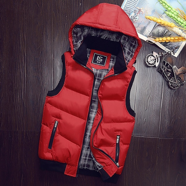 Homme Gilet matelassé Gilet Vacances Quotidien Date Mode Occasionnel Automne Hiver Avec Poches Polyester Chaud Confortable Couleur Unie Fermeture éclair À capuche Coupe régulière Noir Rouge Vert#14297626