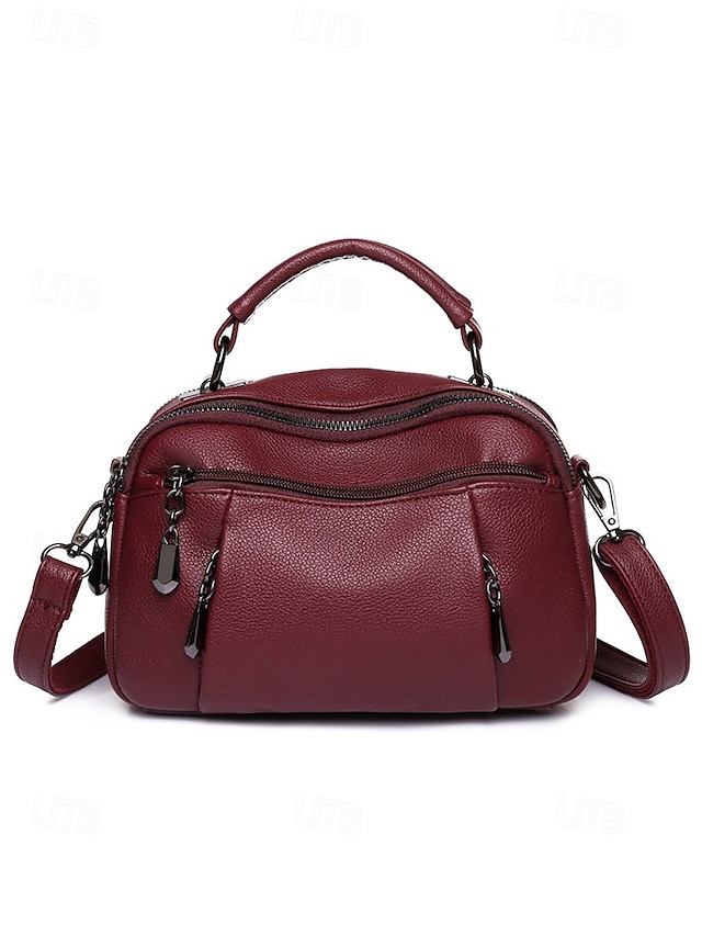 sac à bandoulière en similicuir pour femme, petit sac à main décontracté avec plusieurs compartiments zippés, sac à bandoulière quotidien élégant pour les voyages et le shopping couleur vin noir blanc#14357020