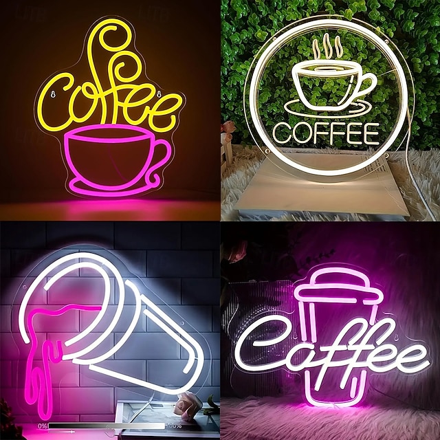 Enseigne lumineuse LED néon café, dimmable, alimentée par USB, colorée, pour intérieur chambre, restaurant, café, mur, créative, en forme d'alphabet, décorative.#14719818