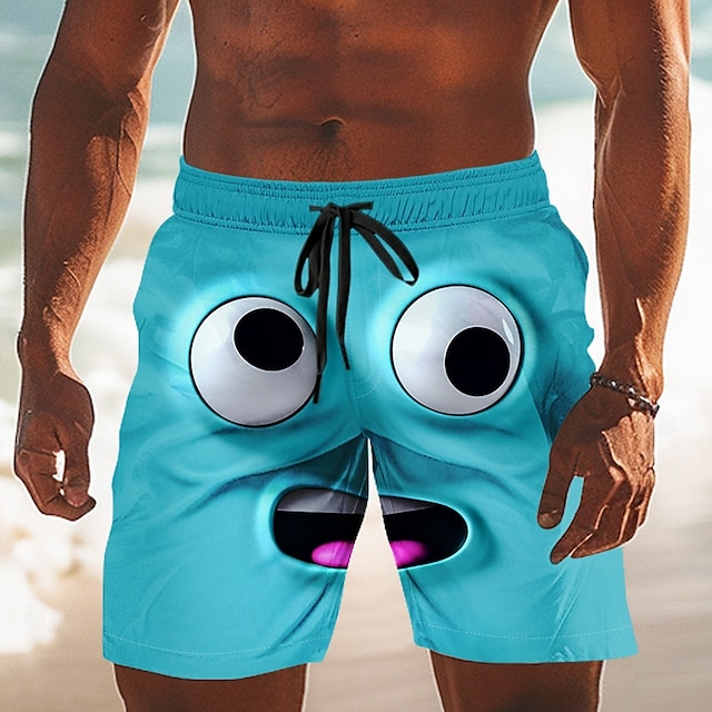 Homme Dessin Animé 3D Visage Souriant Maillots de bain Shorts de bain Shorts de Surf Taille Moyenne Drôle Extérieur Vacances Tenue Quotidienne Poches Latérales doublure en maille Taille élastique #14987755