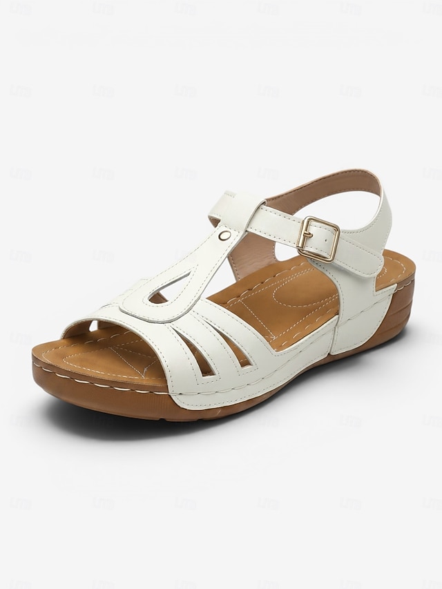 sandales plates marron à boucle en T pour femmes - sandales confortables en similicuir pour un usage quotidien et des activités de plein air #15531385