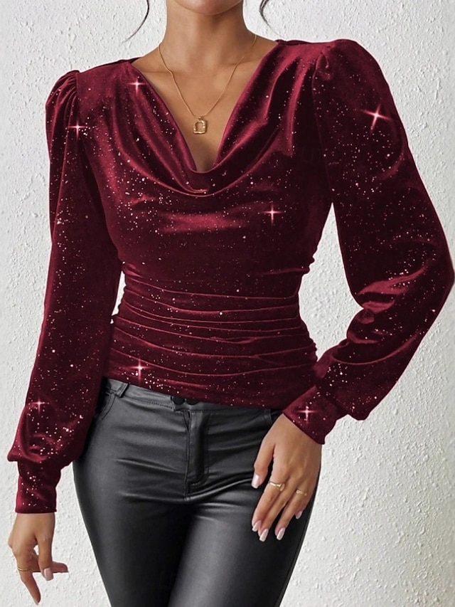 Femmes Chemisier Froncé Couleur Unie Élégant Occasionnel manche longue Cravate au cou Col Bénitier Hauts Réguliers Quotidien Noir Vin Fuchsia Printemps Automne Hiver #16378113