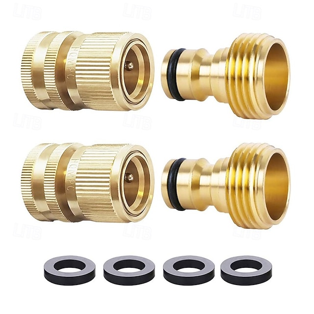 2 jeux de raccords rapides pour tuyau d'arrosage, en laiton massif robuste de 3/4 pouce, raccords universels étanches pour une connexion facile du tuyau d'arrosage #17047545