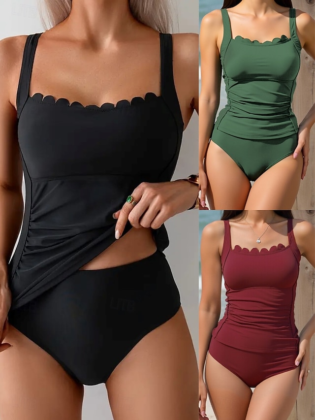 Femmes Maillots de Bain Tankini 2 pièces Taille haute Maillot de bain Contrôle du ventre Taille haute Mince Dos nu Vacances Tenues de plage Couleur Unie Décolleté Sans manches Maillots de bain #17577280