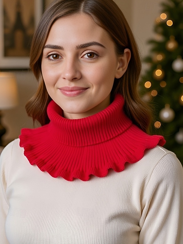 Col côtelé en acrylique de Noël pour femme – confortable et élégant avec des bords volantés, disponible en plusieurs couleurs, parfait pour les vacances d'hiver et les occasions festives #13273191