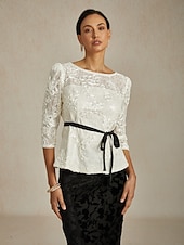 Femmes Hauts en dentelle Fleuri Graphique Élégant Col Bateau Hauts Réguliers Rose pâle Été Printemps Automne #19042352