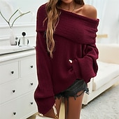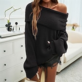 Femmes Pull Mode Streetwear Occasionnel Couleur Unie Côtelé Épaules Dénudées Tricoté manche longue Hauts Réguliers Tricoter Extérieur Quotidien Week-end Beige Automne Hiver #19195346