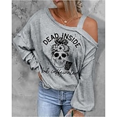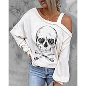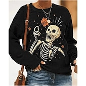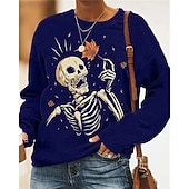 Femmes Sweatshirt Pull Graphique Crâne Halloween Actif Mode Streetwear manche longue Col ras du cou Hauts Réguliers Rue Tenue Quotidienne Occasionnel Imprimé Noir Rouge Bleu Vert Gris Automne Hiver #19409300