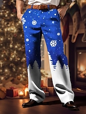 Pantalon imprimé scène de Noël pour homme, pantalon décontracté avec flocon de neige, imprimé 3D, tenue de ville en plein air, pour le travail, en polyester, noir et blanc, jaune vin, S, M, L, #9705898