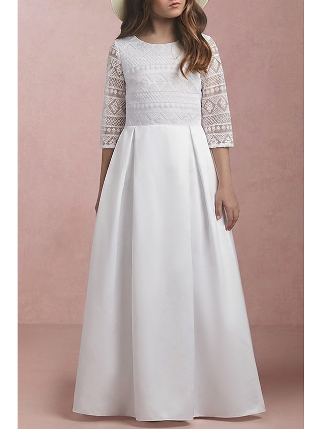 Ligne A Longueur au sol Robe de Demoiselle d'Honneur Fille Première communion Filles Jolie robe de bal Satin avec Noeud(s) Élégant Ajustement 3-16 ans