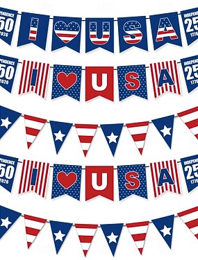 Lot de 5 guirlandes de fanions pour le 250e anniversaire des États-Unis, décorations patriotiques aux couleurs du drapeau américain, 1776-2026, rouge et blanc &bleu, anniversaire &fête de l'été