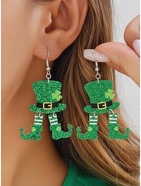 Boucles d'oreilles trèfle en acrylique pour femmes, idéales pour la Saint-Patrick. Modèle léger à paillettes, plusieurs styles disponibles sur le thème du trèfle et de l'Irlande, parfaites pour les défilés, les fêtes, les événements et les célébrations.