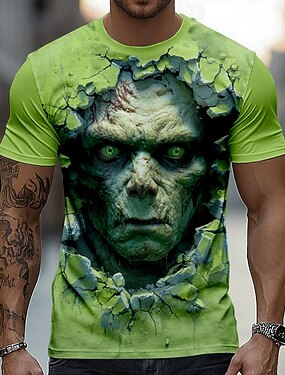 Homme Illusion d'optique Zombies 3D T-shirt Manche Courte T-shirt Impression 3D Col ras du cou Chemise Exagéré Designer Horreur Soirée Rue Club Vert 1 # Vert 2# Été Printemps Toutes saisons Vêtement