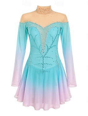 Robe de Patinage Artistique Femme Fille Patinage Robes Bleu + Vert Patchwork Trou de pouce Maille Spandex Elastique Entraînement Professionnel Compétition Tenue de Patinage Chaud Cristal / Stras
