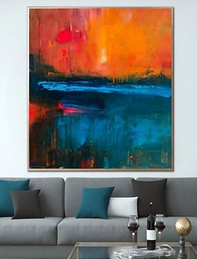 Peinture à l'huile faite à la main sur toile, art mural, décoration contemporaine, couleurs brillantes, texture abstraite pour décoration intérieure, peinture roulée sans cadre, non étirée