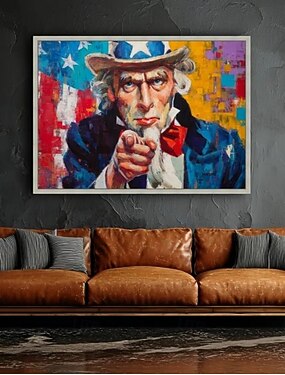 Peinture à l'huile faite main sur toile, décoration murale moderne, style graffiti pop art, représentant l'Oncle Sam. Toile tendue sur châssis ou roulée sans cadre.