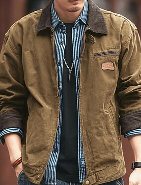 Homme Veste Légère Veste Cargo Veste Décontractée Vacances Quotidien Résistant à l'usure Avec Poches Automne Hiver Uni Mode Classique Revers Régulier Noir Marron Vert Véronèse Gris foncé Veste